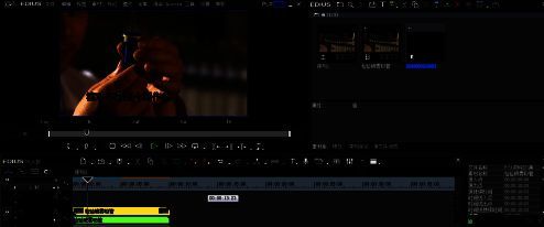 在EDIUS工作窗口中,将素材面板中的字幕文件拖入到视频轨道上