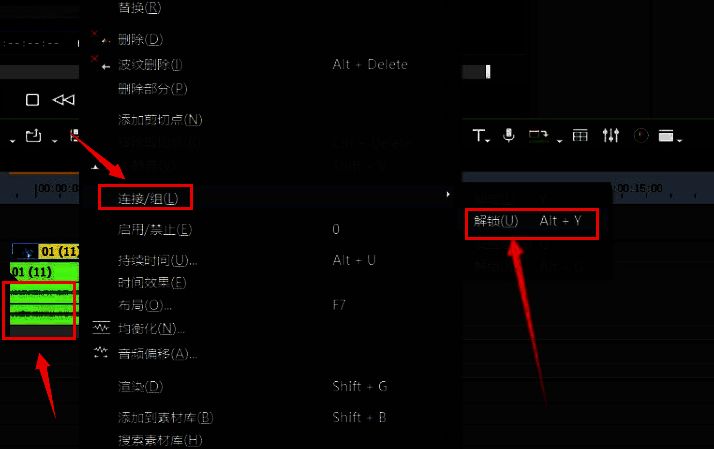 随后,打开轨道的声音波形显示,点击连接组栏目中的解锁按钮