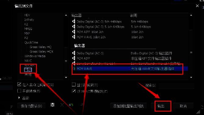 最后,在打开的格式设置窗口中找到音频选项,点击选中PCM WAVE格式输出保存即可