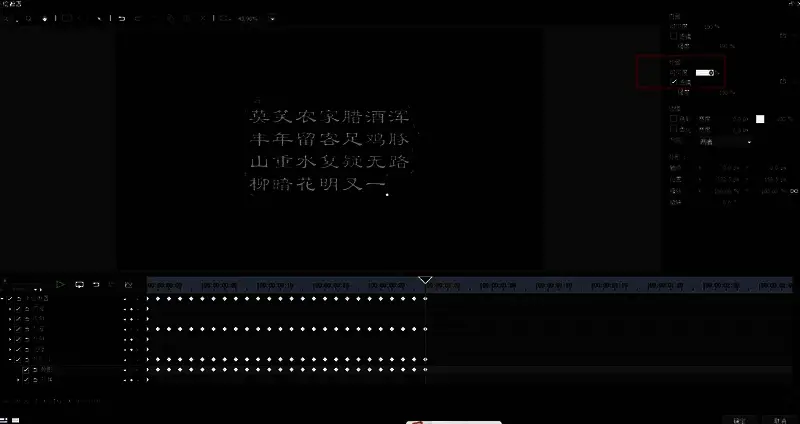 把它拖拽的视频轨道上,把它当做一张图片素材使用。然后在特效面板中找到“手绘遮罩”,把手绘遮罩拖到字幕素材上,双击信息面板里的“手绘遮罩”则进入其设置对话框。在这选择菜单上面的钢笔工具,把开始要出现的字用钢笔工具选好,在左边的菜单中选择“滤镜”外部,我们把可见度调整到“0”,此时在下方的开始出打上关键帧。这样一个字就出来了。移动关键帧的滑块位置,再选择钢笔工具的下拉选项,添加选择点,拉动选区的范围让第二个字也被选中,此时第二个关键帧将会被打上。这样以此类推一直到所有的文字都被选完。点击确定,配合声音播放一遍就是打字机打字的效果!