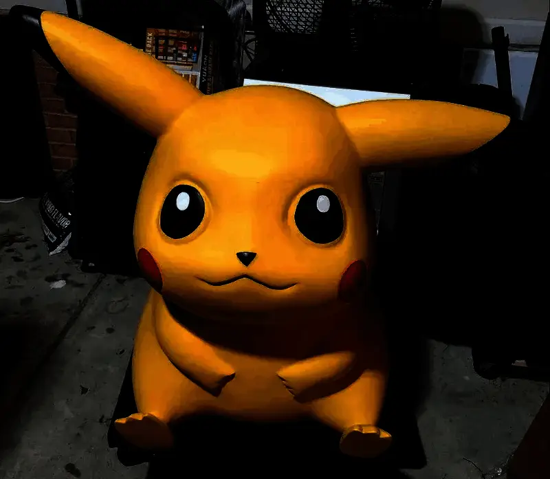 至于大小,这尊雕像高约32英寸(81.28厘米),宽42英寸(106.68厘米),厚27英寸(68.58厘米)。ElbowDeepInElmo表示,他们打算通过3D打印技术来为这尊皮卡丘补上一条尾巴。目前他们并没有打算出售或交换这尊雕像——考虑到人们对宝可梦周边收藏品的疯狂热情,这样的决定也不难理解。