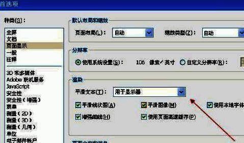 打开首选项设置后,我们点击左侧的页面显示——渲染,点击用于手提电脑
