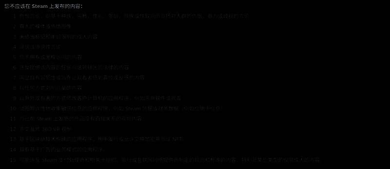 不应在Steam上发布内容完整条例: