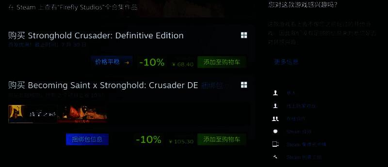 城堡模拟RTS《要塞十字军东征:决定版(Stronghold Crusader: Definitive Edition)》现已在昨日登陆了PC Steam平台,原价76元,现发售特惠,10%折扣后售价68.4元。游戏自带简体中文,获得玩家特别好评。