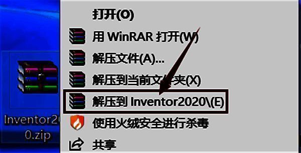 1.首先,在PC下载网下载Autodesk Inventor2020软件包,解压,鼠标右击软件压缩包,选择”解压到Inventor2020”。