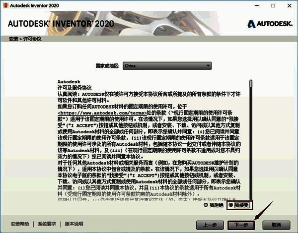 4. 阅读许可协议,选择”我接受”,然后点击”下一步”。