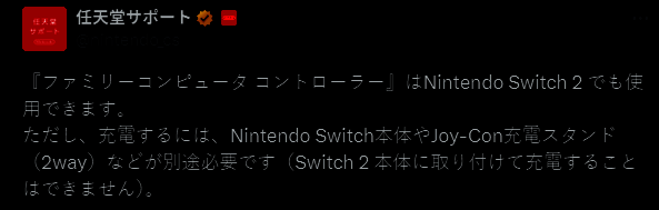 但是,想要充电需要另行购买Switch本体与Joy-Con充电底座.(无法插在Switch 2上直接充电)。