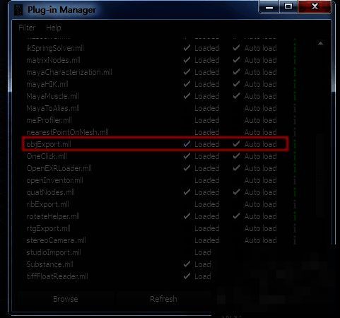 3.然后我们在里面将objexport.mll后面的选项全部全中。