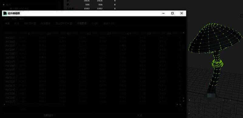 在绘制时,对于权重控制明显的骨骼,可在窗口>常规编辑器>组件编辑器中,通过选择点,改变对应骨骼的值。0是不控制,1是完全控制。如root骨骼控制最底部的点,因此,最底部一圈点对应root值为1,其他骨骼均为0