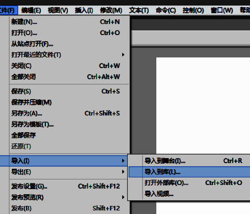 点击“文件”,在“导入”中找到“导入到库”,将一张试卷的图片素材打开。