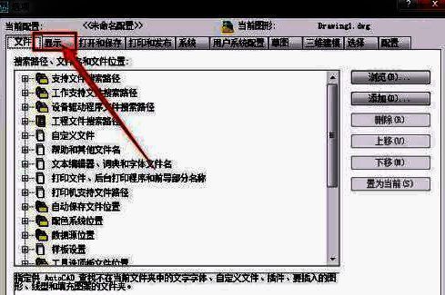 第二步,在绘图界面单击鼠标右键,单击“选项”,出现选线会话框,单击“显示”;