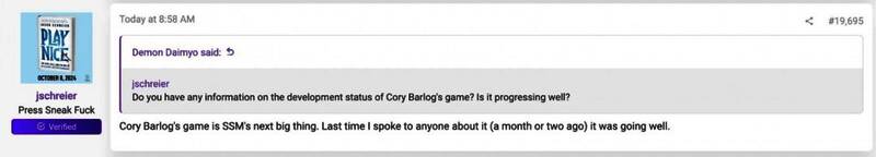 Jason Schreier在ResetEra论坛回应网友提问时表示,项目自数月前消息传出后进展顺利。科里·巴洛格的参与也被视为其未回归《战神:诸神黄昏》开发的重要原因。