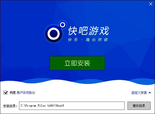 2.自定义安装路径:如果你希望将快吧游戏盒安装在非C盘的位置,请点击“自定义安装”选项。这将允许你选择一个更合适的安装目录。在安装界面的下方,你会看到一个“更改目录”的选项,点击它并选择一个新位置来安装快吧游戏盒。