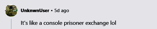 Xbox玩家很快也能玩到一款真正的PS5和PC平台的多人射击爆款游戏了。有趣的是,同一天还将有一款经典的Xbox游戏以重制版形式登陆PS5。对于这种交换,玩家们找到了一个幽默的比喻。