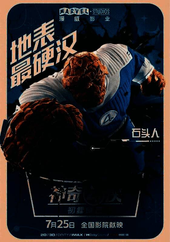 今漫威影业《神奇四侠:初露锋芒》国内已定档7月25日,现在其角色海报曝光,分别介绍了神奇先生、隐形女、霹雳火和石头人,一起来看看吧!