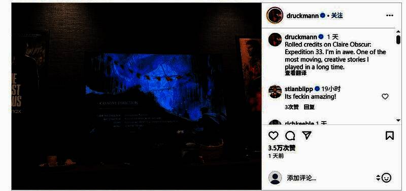 JRPG《光与影:33号远征队》发售后人气极高,被许多人视为2025年年度游戏的有力竞争者。近日顽皮狗总裁尼尔•德鲁克在ins上分享了《光与影:33号远征队》片尾制作人员名单截图,宣布自己已通关这款游戏。