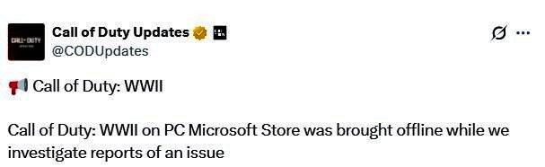 动视于7月5日宣布,将停止《使命召唤:二战》PC(Microsoft Store)版的在线服务,并对报告的问题进行调查。此前,该游戏的Microsoft Store版本收到部分用户报告称遭受了远程代码执行(RCE)网络攻击。
