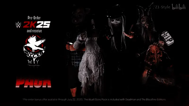 预告片结尾确认,在7月22日之前预购Switch 2版《WWE 2K25》的玩家,将获得Wyatt Sicks包作为预购奖励。未参与预购的玩家,仍可通过购买包含该组合包的“亡者版”(Deadman Edition)或“血统版”(Bloodline Edition)游戏来获取。