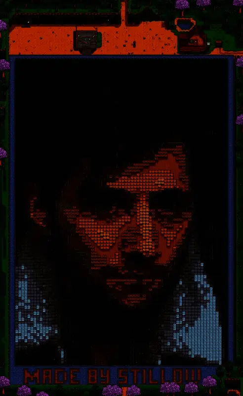 该作品采用游戏内的雕像、容器等材料,结合像素艺术和抖动技术,还原了Eric Barone标志性的外套造型。Stillow表示,创作初衷是出于放松和消遣,但过程中逐渐发现作品的潜力,因此决定尽快完成。