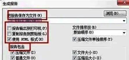 检查参数无误后,点击 【确定】 开始生成报告。WinRAR 会自动扫描文件并生成报告,进度条显示完成状态。导航至保存位置,双击生成的 HTML 文件(或文本文件)。