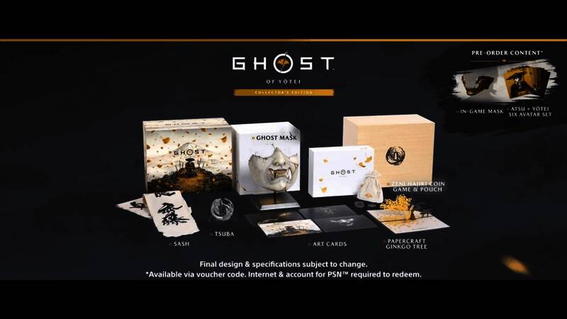 《羊蹄山之魂》收藏版数字特典包括蛇之甲胄、甲胄涂装、坐骑和护符等。实体礼物包含刀镡、战鬼面具、收藏卡、钱袋子、布带、钱币和银杏树纸艺等。