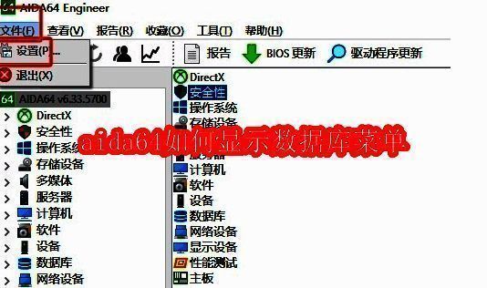 aida64硬件检测工具中,很多用户不知道怎么才能显示数据库的菜单。这里为大家带来关于显示数据库菜单的教程分享,快一起来看看吧!