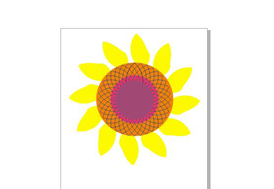在设置向日葵的叶子,进行30度旋转,填充黄色。继续去选择应用到再制,让整个叶子填充整个圆形。