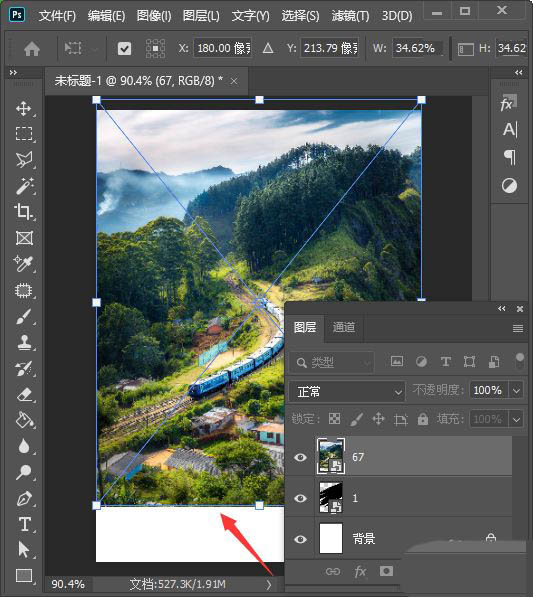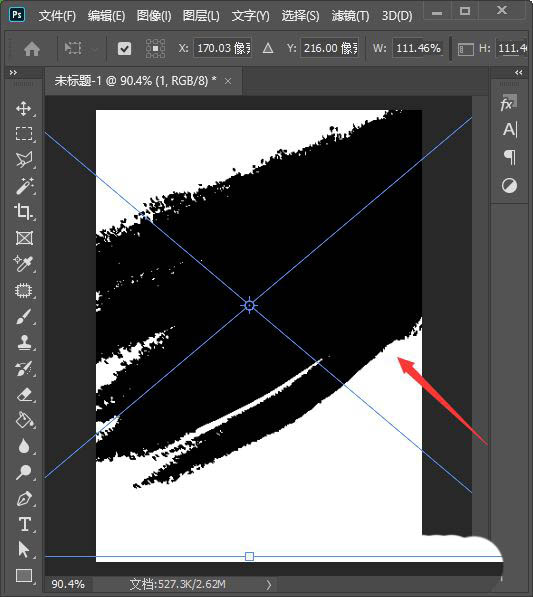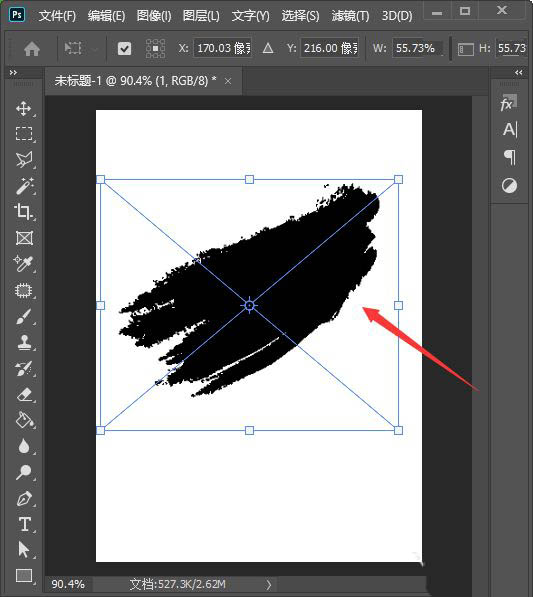 接着,我们按下【CTRL+T】把笔刷的图片调整好合适的大小,如图所示。