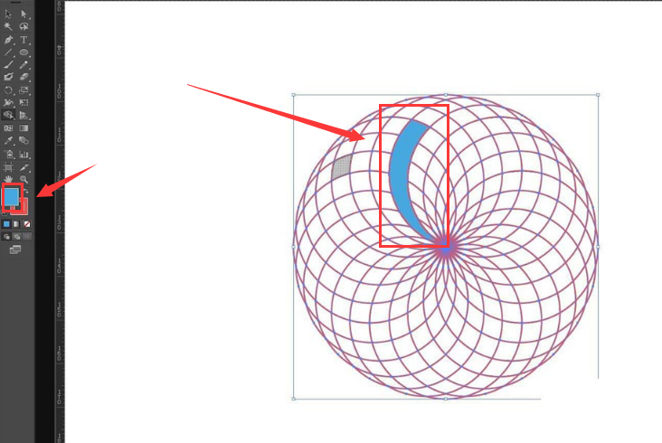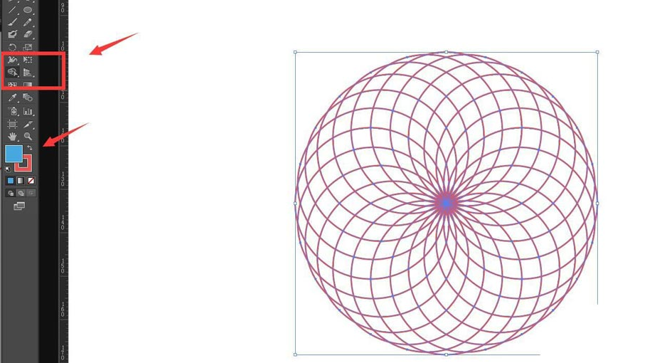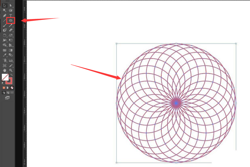 1.首先,点击椭圆工具绘制一个圆形,并如下图所示进行旋转复制