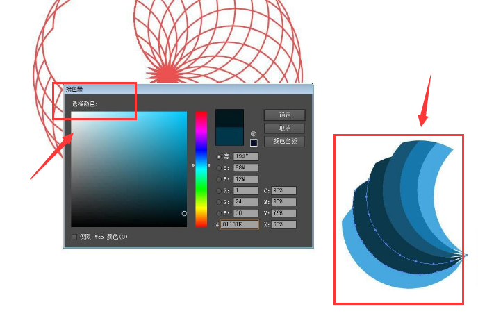 5.最后,打开拾色器面板中的吸管工具,向下拖动为图标依次填充深浅颜色即可