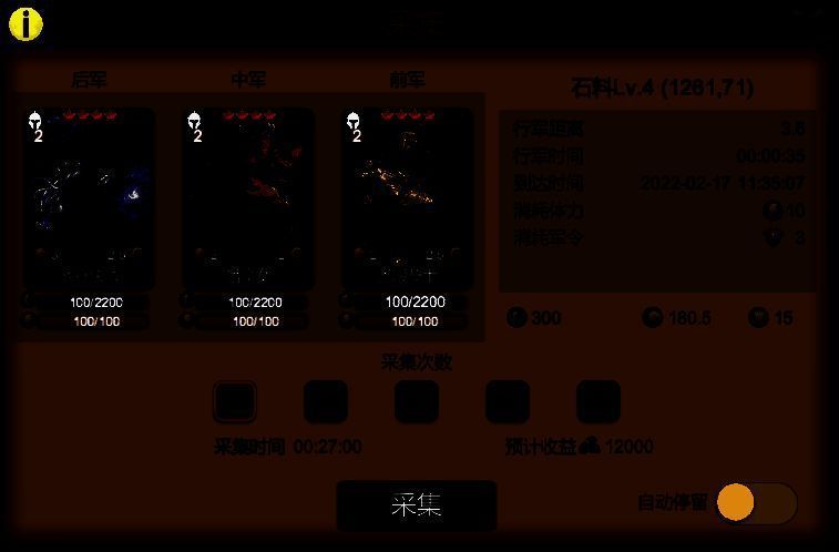 7、打下4级地后,及时进行采集,注意石料需求是其他材料的2倍