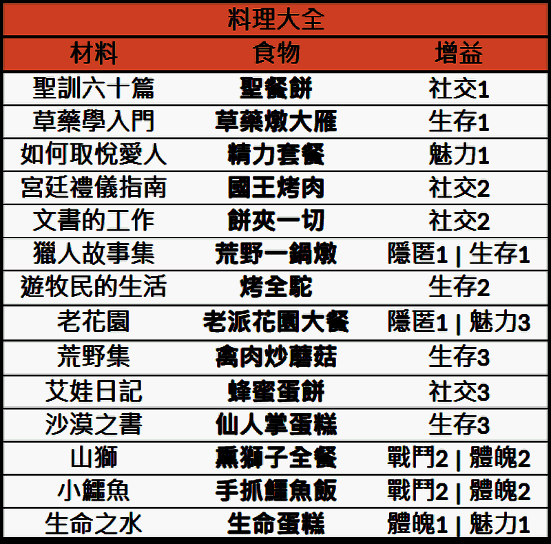 《苏丹的游戏》中的料理、诗歌、珠宝、思潮、政务事件和裁缝店是游戏里比较常见的辅助增益,而不同的东西增益效果也各不相同,首先是圣餐饼,可以增加一点社交,然后是草药炖大雁,可以增加一点生存。