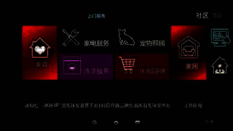 3、用户可浏览图文、观看社区视频,查询周边商家服务,逐步实现电视端订餐、报修等服务,参与项目投票、活动报名等互动功能,足不出户享受便捷生活。