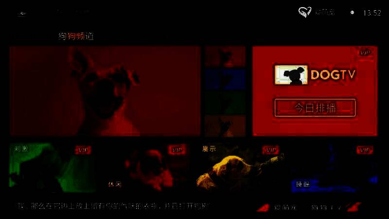 这是一档以狗狗为受众的电视节目,采用狗狗能感知的色彩并呈现适合它们观看的内容,为狗狗展现美妙风景。它可有效缓解狗狗的分离焦虑,避免抑郁和不良情绪,让狗狗保持快乐与健康。此外,节目还为你提供宠物训养、护理、私家美食以及人与狗狗的温暖故事,是时候换种方式养宠物啦!
