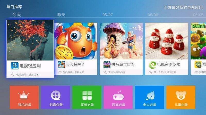 每日精心推荐精品电视应用,汇集各类好玩的应用。具备装机必备、影音必备、系统必备、游戏必备、老人必备、儿童必备这六大特色分类,让您轻松找到精品、优质、必备的电视软件。