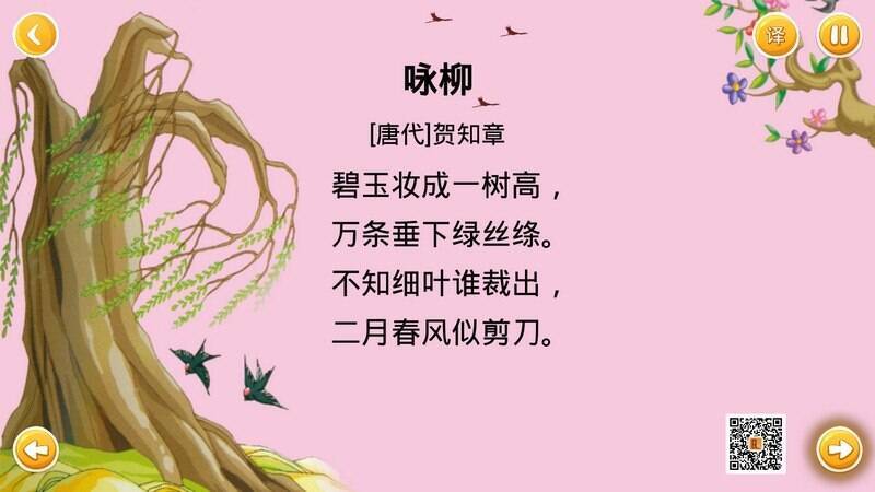 宝宝学唐诗已逐渐成为培养宝宝记忆力的有效方法之一。常读唐诗的宝宝长大后在诗词歌赋、才艺方面更易有所成就,唐诗将陪伴宝宝度过漫长时光。本软件专为学龄前宝宝打造,把常见唐诗配上有趣的相关图片,通过真人朗诵,让宝宝感兴趣、爱听且记得牢。宝宝能在玩乐中背诵大量唐诗,增强记忆、学习国学,同时开发大脑。