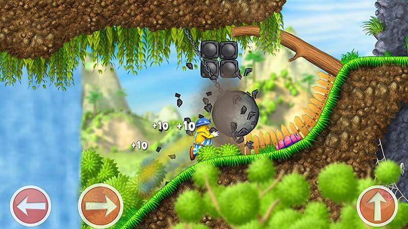游戏关卡长度比其他横版闯关更长,不过由于场景元素丰富,有大量可破坏元素,玩家在收集金币过程中爽快感十足,不会觉得枯燥。