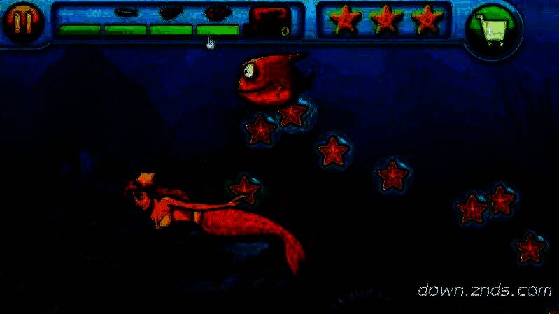 玩家通过手指滑动(或点击)控制主角,躲避比自己大的鱼,捕食比自己小的鱼。吃鱼可获得成长值,达到一定成长值后主角会长大,能吃的鱼增多,威胁自己的鱼减少,直至过关。随着不断吃小鱼,界面上方靠左的绿色成长条会增长,被大鱼攻击则会下降。右边的3颗星星为过关评价,被攻击会使星星破碎降低评价,评价越高美人鱼的奖励星越多。
