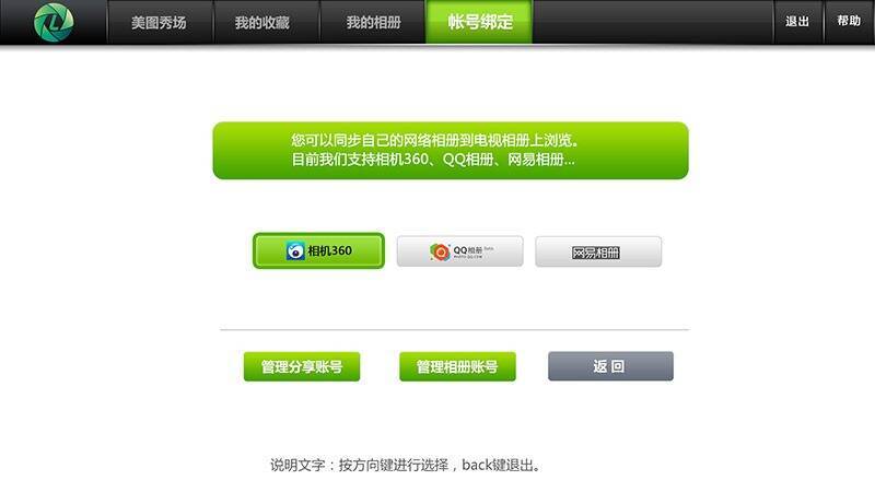 欢网电视相册,也就是乐拍相册,是几大主流网络相册的聚合展示平台。用户通过简单操作,就能将云端相册和手机相册同步到 TV 端,体验大屏、清晰、色彩艳丽的相片浏览和欣赏功能,还能收藏美图并分享到主流社交平台。
