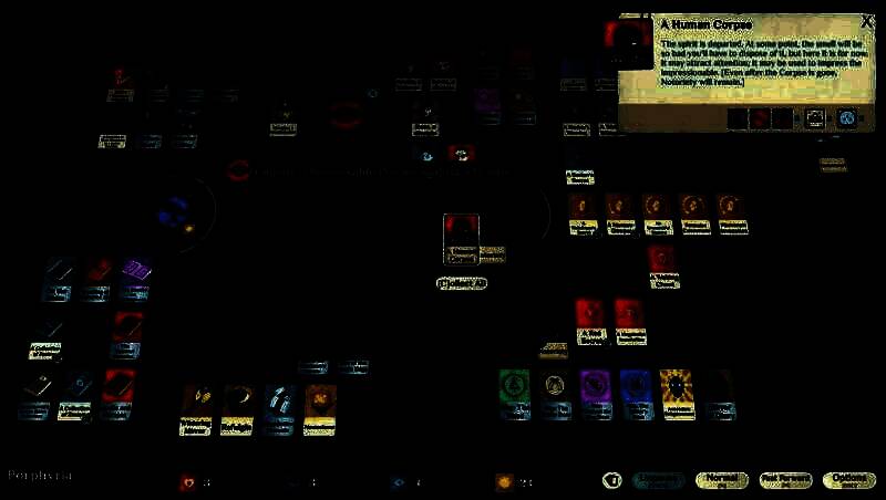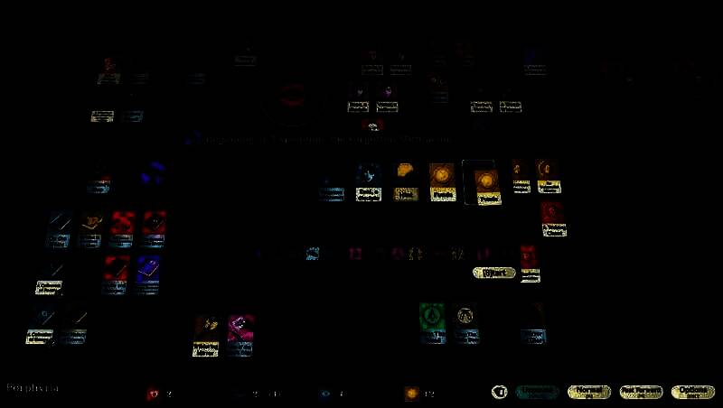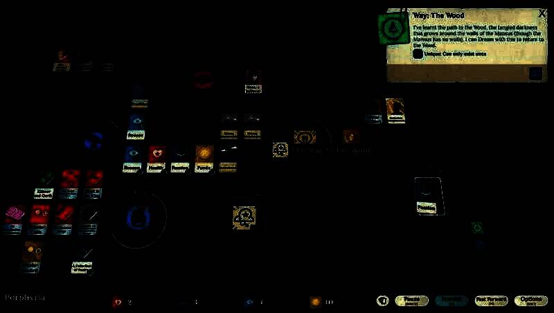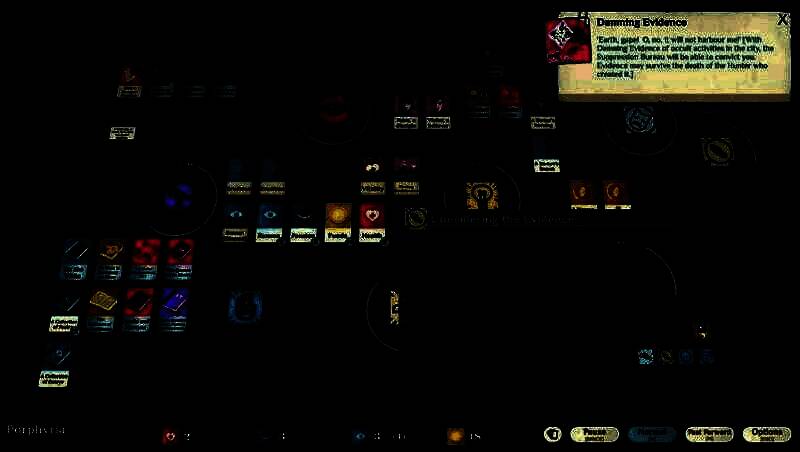 游戏存在健康(Health)、理性(Reason)和热情(Passion)三个主要属性,以卡片形式置于玩家桌面。玩家借助这些卡片开展工作、探索、研究等各类互动。