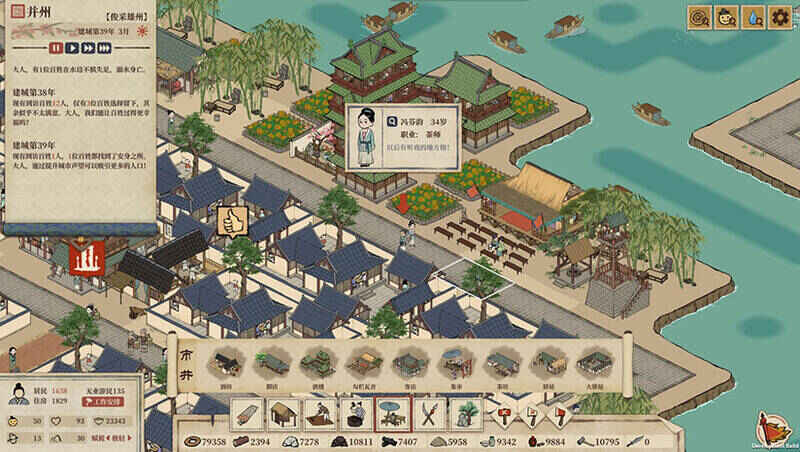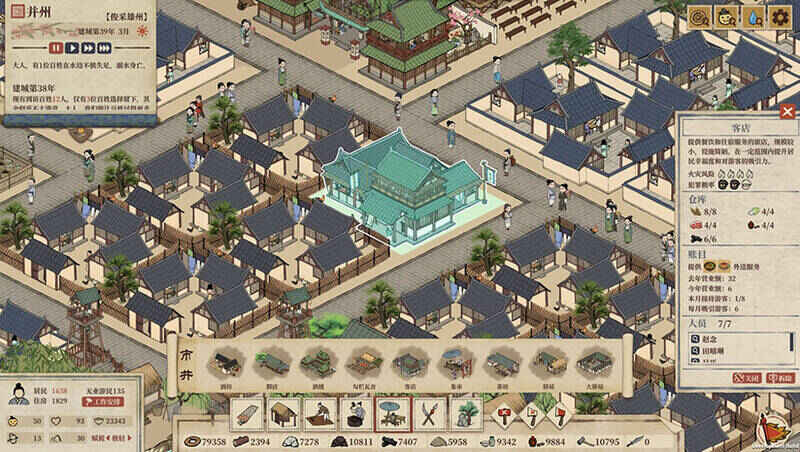 游戏里存在农业、工业、商业等多种产业区域。玩家要在城市周边合理布局农田、菜园、养殖场等农业建筑,确保粮食供应和物资储备;在城市外围设置瓷窑、铁匠铺、织布坊等工业建筑,用于生产商品和器具;在城市中心打造茶馆、酒楼、燕馆等商业建筑,吸引游客消费,增加税收。建筑布局相当关键,像采石场、铁矿场这类会产生噪音的工业建筑,要远离居民区,以免降低居民幸福感;而集市、外卖、茶坊等需求建筑,要根据其影响范围覆盖居民区,满足居民需求。