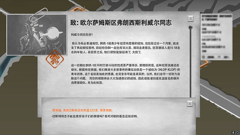 恭喜您,敬爱的同志!从当下起,您将成为钢铁一号市——一个规模不大但功能齐全的工业中心的领导人。您的使命是,在新的集权体制下管理并重建这个工业中心,使其从近期的革命风暴中恢复活力:目前它正遭受日益严重的社会危机,还面临巨额经济赤字。