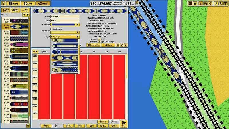 游戏中有电车、地铁、通勤、区域和高速火车等多种类型。隧道、高架桥和地面轨道在环境、火车速度以及公司资金方面存在着各种权衡。