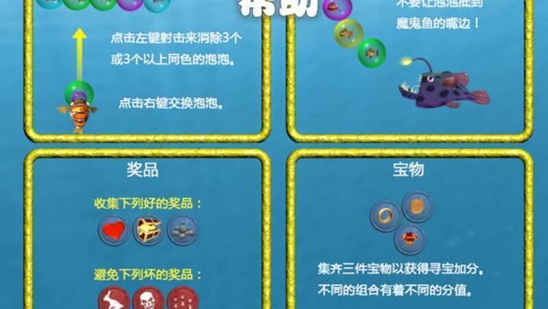 如果你正在寻找一款能让你沉浸其中的休闲益智游戏,那么祖玛泡泡鱼电脑版绝对是你的不二之选。在这款游戏中,玩家将化身为可爱的主角Bob,深入神秘的海底世界开启一场刺激的冒险之旅。游戏以美丽的蓝色海洋为背景,色彩斑斓的3D泡泡在其中悠然漂浮。玩家只需通过鼠标操作,左键发射泡泡,让三个及以上相同颜色的泡泡相连即可消除,以此解救被困在泡泡中的小鱼。