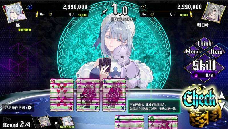 游戏基于德州扑克,玩家依靠策略和技巧,把对手筹码清零来取胜。主角拥有可控制手牌或看穿对手底牌等技能,帮助玩家占据牌局优势。同时,玩家需探索都市收集线索,揭开魔女千术之谜。