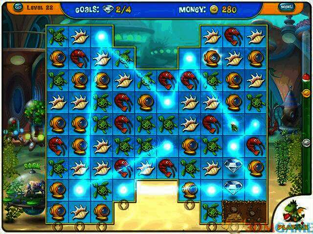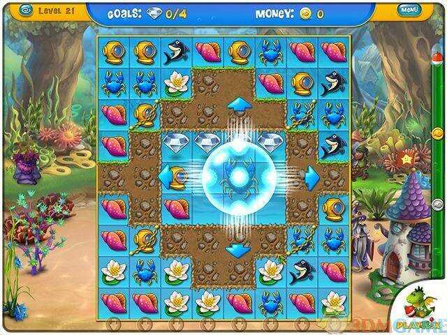在鱼之王国:时间深处英文免安装版中,只需将3个相同的物体连在一起就能完成消除。随着游戏推进,通关条件各不相同,有的需要清除障碍,有的要让钻石落到最下面,而且各种障碍也会不断增多。