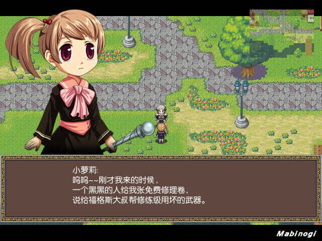 这是同名网游洛奇的同人版本,采用日式RPG风格。它沿用了原网游的世界观,不过主要剧情是原创的,讲述玩家在游戏中成长的心情故事,情节搞笑又不失真情。这款游戏更多是对游戏中同伴的纪念,即便有人离开了游戏,真情依旧在!除NPC外,人物设计完全原创。为保证风格统一,使用RPXP的地图素材制作,美工方面花了大量时间美化。系统采用日式RPG惯用系统并做了调整,增加了随机物品属性、随机地下城、按键技能等系统。详细情况请看下面的图片。