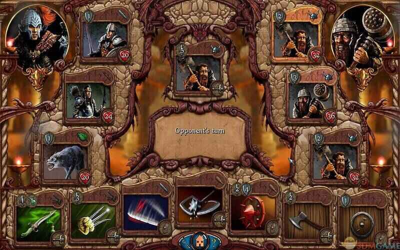 战斗为回合制卡牌类型,依设定的卡牌类型,玩家会随机获得七张卡牌,涵盖装备类(如增加攻击的剑、增加防御的盾)、道具类(如增加生命值的药物、增加状态的药剂)、攻击性卡牌(如刀、斧等)和魔法卡牌。每回合仅能用一张卡牌,需借此保全自身、战胜对手。游戏有180张不同卡牌,组合多样,战术丰富。