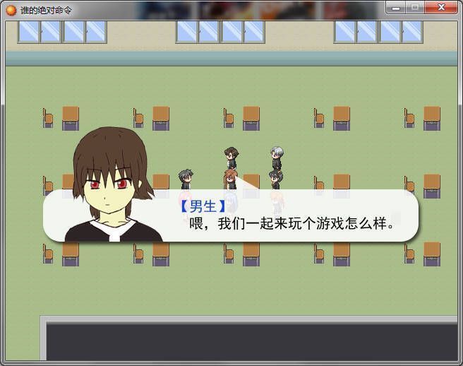谁的绝对命令简体中文免安装版是由Eden_詩音制作的一款恐怖解谜类游戏。游戏围绕9个学生参与的一场死亡命令游戏展开,玩家需在游戏里想办法完成各种命令。