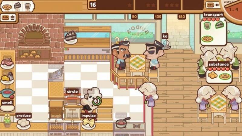 游戏的核心机制完全依靠键盘操作,玩家需要快速输入食材名称、烹饪指令(如“切”“煮”“煎”)以及对话选项来推动游戏流程。比如,输入“tomato chop”完成番茄切片,或者键入“serve table3”为指定桌号上菜。随着章节的推进,订单的复杂度会不断提升,玩家要同时管理多个菜品的进度,还能通过“Shift”键切换厨房工具(像用灭火器驱赶老鼠)。此外,游戏融入了策略性的时间管理:顾客的耐心值会逐渐耗尽,而突发事件(如食材短缺、设备故障)要求玩家灵活调整优先级。部分关卡还需要完成销售目标,或者与威斯克先生进行“食谱保卫战”——通过打字触发左轮手枪射击动作击退对手。